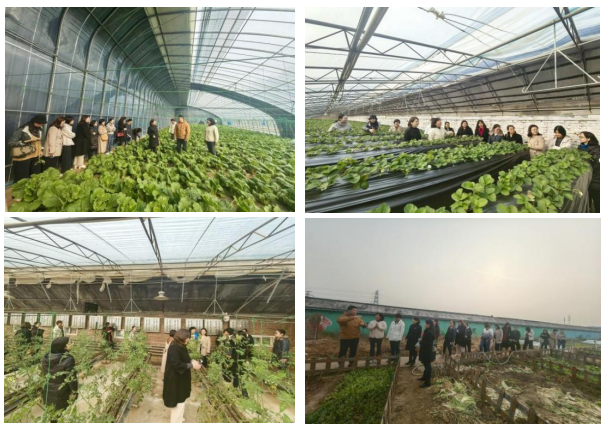 在随后的实地考察过程中,理事们全面了解了园区的整体运营情况。作为“金六环农业园科技小院”的承载基地,该园区先进的设施农业、严格的有机生产体系以及丰富的农旅融合业态,生动展现了科技赋能现代农业的丰硕成果。女教授们深入温室种植区,重点观摩了高架草莓、即食蔬菜等功能性农产品的生产过程,并与小院技术人员就生产中的实际难题进行了深入探讨。大家结合各自专业领域,从植物保护、栽培技术、土壤健康、产业规划、品牌营销等多维度,为科技小院的未来发展方向提供了宝贵的跨学科思路与具体建议。