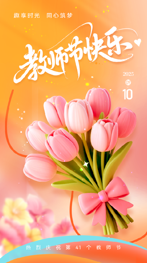 时维九月,序属三秋。在这硕果盈枝、桃李芬芳的美好时节,我们满怀崇敬与喜悦,迎来了第41个教师节,值此佳节之际,向辛勤耕耘在教学、科研、管理、服务一线的全体教职工,向为学校发展倾注心血的离退休老同志,致以最热烈的祝贺和最诚挚的节日问候!