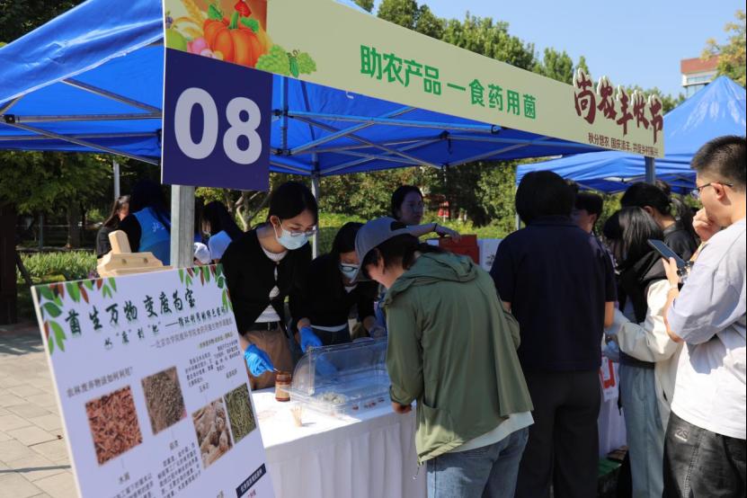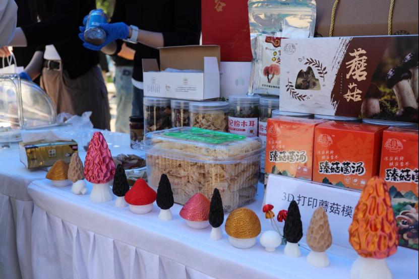 展区内还有创意十足的产品:融入校园文化元素的文创桃、造型精巧的3D打印食品、口感丰富的多口味益生菌含片以及食药用菌课题组培育的各类鲜嫩蘑菇,让师生直呼“科技感拉满”。