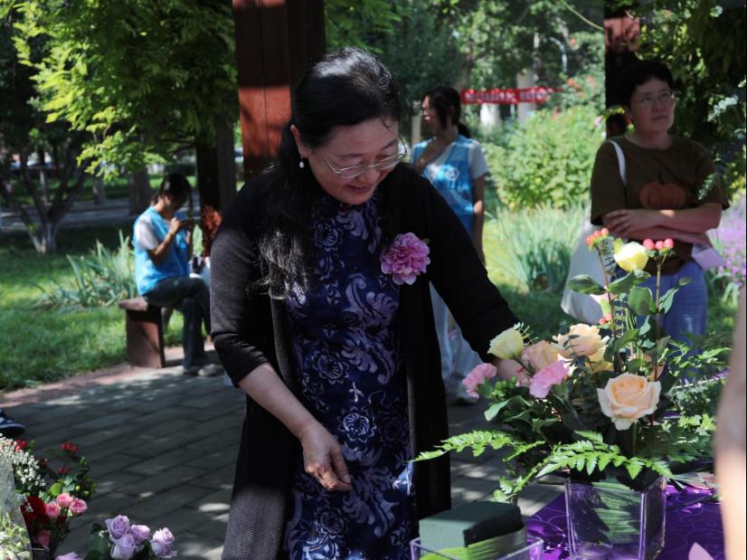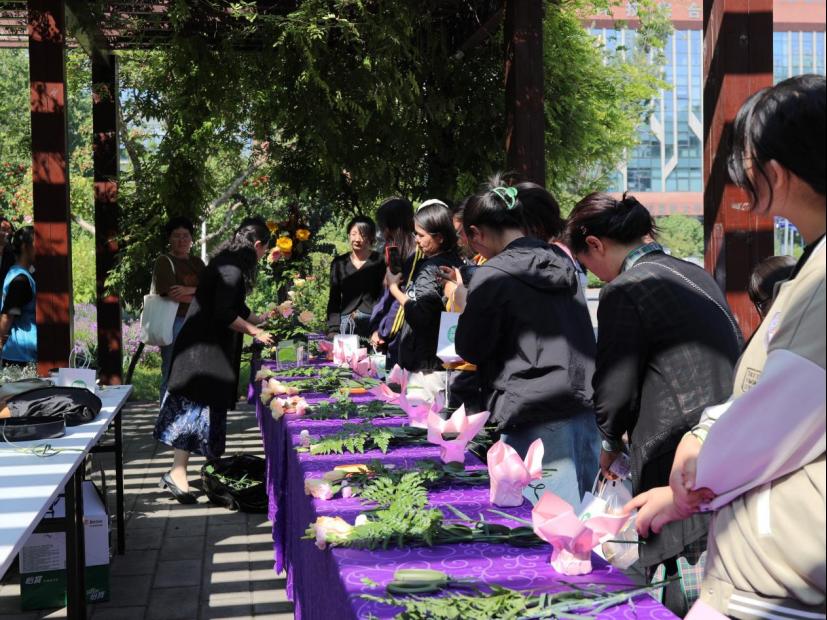 插花欣赏区由园林学院师生精心布置,侯芳梅副教授带领师生创作各类融合自然美学与农时意境的花艺作品,吸引不少师生参与和拍照留念。